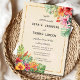 Exotic leaves and flowers watercolor wedding invitation