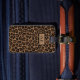 This design features an exotic leopard print pattern with a place for you to personalise it with your monogram initials, which are set against a coordinating tan background. The reverse side is a coordinating tan background and you add your full name, address, and e-ml or phone #.