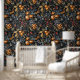 Exotic orange fruits & leaves luxury dark colour wallpaper