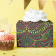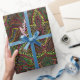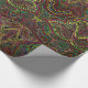 Black wrapping paper with an exotic paisley damask design made up of thousands of colourful dots. Vivid swirls and dotted flourishes in pink, blue, green, orange, yellow, and red.