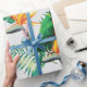 Exotic colourful parrot and orange flowers pattern with green leaves. Customisable wrapping paper template