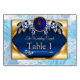 A dream-catcher design with a blue exotic-parrot bird tone feathers on GOLD with a soft blues feather background wedding theme to personalise your very own stationary theme for number and name cards for each quest on the table.