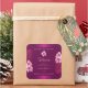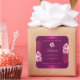 Make a lasting impression with this elegant and exotic product label design featuring lovely pink hawaiian flowers and palm leaves on a purple background. A cool palm leaf shadow matching to the shimmery border frames.