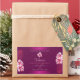 Make a lasting impression with this elegant and exotic product label design featuring lovely pink hawaiian flowers and palm leaves on a purple background. A cool palm leaf shadow matching to the shimmery border frames.