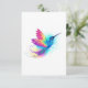 Bright, iridescent, exotic flying hummingbird on white background, painted over with multicolor, watercolor paint. Rainbow hummingbird.