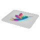 Bright, iridescent, exotic flying hummingbird on white background, painted over with multicolor, watercolor paint. Rainbow hummingbird.