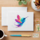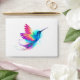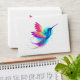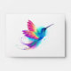 Bright, iridescent, exotic flying hummingbird on white background, painted over with multicolor, watercolor paint. Rainbow hummingbird.