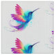 Bright, iridescent, exotic flying hummingbird on white background, painted over with multicolor, watercolor paint. Rainbow hummingbird.