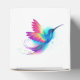 Bright, iridescent, exotic flying hummingbird on white background, painted over with multicolor, watercolor paint. Rainbow hummingbird.