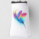 Bright, iridescent, exotic flying hummingbird on white background, painted over with multicolor, watercolor paint. Rainbow hummingbird.