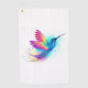 Bright, iridescent, exotic flying hummingbird on white background, painted over with multicolor, watercolor paint. Rainbow hummingbird.