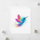 Bright, iridescent, exotic flying hummingbird on white background, painted over with multicolor, watercolor paint. Rainbow hummingbird.