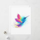 Bright, iridescent, exotic flying hummingbird on white background, painted over with multicolor, watercolor paint. Rainbow hummingbird.