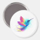 Bright, iridescent, exotic flying hummingbird on white background, painted over with multicolor, watercolor paint. Rainbow hummingbird.