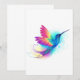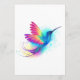 Bright, iridescent, exotic flying hummingbird on white background, painted over with multicolor, watercolor paint. Rainbow hummingbird.