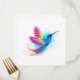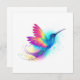 Bright, iridescent, exotic flying hummingbird on white background, painted over with multicolor, watercolor paint. Rainbow hummingbird.