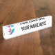 The product was just like it was in the pics, everyone at work loves it! Came on time and it was neatly packed. Bold and Clear. My name can be seen from far and it matches in color.
