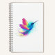 Bright, iridescent, exotic flying hummingbird on white background, painted over with multicolor, watercolor paint. Rainbow hummingbird.