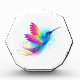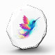 Bright, iridescent, exotic flying hummingbird on white background, painted over with multicolor, watercolor paint. Rainbow hummingbird.
