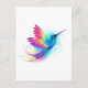 Bright, iridescent, exotic flying hummingbird on white background, painted over with multicolor, watercolor paint. Rainbow hummingbird.