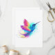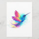 Bright, iridescent, exotic flying hummingbird on white background, painted over with multicolor, watercolor paint. Rainbow hummingbird.
