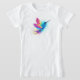 Bright, iridescent, exotic flying hummingbird on white background, painted over with multicolor, watercolor paint. Rainbow hummingbird.
