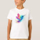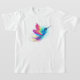 Bright, iridescent, exotic flying hummingbird on white background, painted over with multicolor, watercolor paint. Rainbow hummingbird.