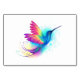 Bright, iridescent, exotic flying hummingbird on white background, painted over with multicolor, watercolor paint. Rainbow hummingbird.