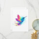 Bright, iridescent, exotic flying hummingbird on white background, painted over with multicolor, watercolor paint. Rainbow hummingbird.