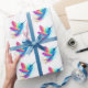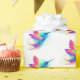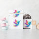 Bright, iridescent, exotic flying hummingbird on white background, painted over with multicolor, watercolor paint. Rainbow hummingbird.