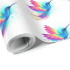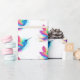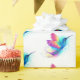 Bright, iridescent, exotic flying hummingbird on white background, painted over with multicolor, watercolor paint. Rainbow hummingbird.