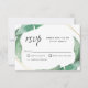 A lovely choice for a tropical themed wedding, this RSVP card design has lush exotic banana leaves displayed in opposite corners of the design. It is a beautiful choice for beach weddings, destination weddings, or weddings with a tropical theme. Personalise the RSVP date with your required response date.