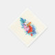Paper napkins with a vibrant and beautiful tropical flower bouquet. Orchids, hibiscus and tropical leaves. Pink, turquoise, red and blue colours.