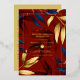 Tropical leaf pattern bachelorette weekend invitation with itinerary in accents of blue, burgundy and gold. Please note that the leaves are not real foil.