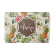 An exotic tropical pineapple floral pattern bathmat that can be personalised. Add your name and monogrammed initial to the dark brown rounded hexagon badge to make it uniquely yours. This is part of the Tropical Pineapple Floral Emperador Monogram Collection. Choose from 3 sizes.