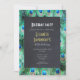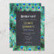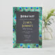 A birthday party invitation with a brightly coloured pattern of exotic and wild peacock feathers in pretty teal, jewel green, aqua and cobalt blue. Artistic and fancy, created with watercolors. Personalise with your birthday party details on a trendy chalkboard texture background. A chic and stylish design.