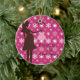 Pink and white snowflake design with a brown and pink pregnant silhouette.