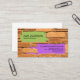 Design features an old brick wall with two patches of paint after plastering and masonry works. The green wall has your prestigious name and job title. Below this, at the light purple wall lies your business name and contact details.