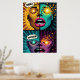 Ignite your walls with this electrifying Pop Art Comic Poster featuring dual split faces and exploding starburst eyes. A fusion of psychedelic surrealism, glitch aesthetics, and vibrant comic book energy, this artwork captures the emotional overload of the digital age in four dynamic quadrants.