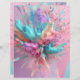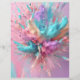 An abstract design of exploding paint with a faux 3d effect in a colour palette of pink, turquoise, lilac, coral and ivory.