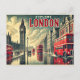 Here’s the vintage travel postcard featuring London with Big Ben towering over a rainy street. 🇬🇧🚌☔✨ The scene includes iconic red double-decker buses driving along the wet road, their reflections visible in the puddles. The background showcases classic London architecture with ornate facades, while the cloudy sky has a soft glow of light breaking through. The bold Art Deco-style typography reads "Explore London", creating a nostalgic, European travel vibe.