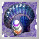 A blue scallop seashell and some mysterious distorted Russian writings, teardrop and crescent shapes. The text is customisable. Designed by Alexandra Cook aka Linandara for a bright and happy tomorrow.