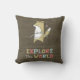 Scandinavian style Boho fox complete with feathered headband and bow, with multi-coloured "Explore the World" text on rustic brown burlap look background