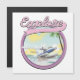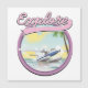 Explore travel logo with a beautiful light aircraft and palm tree.