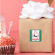 Colourful and fun sticker for your child's gifts has green with white snowflakes background. A reindeer silhouette is flying in the centre and it says Express Reindeer Delivery. Direct North Pole Service. Please deliver to: Personalise it with the last two digits of the year and your childs name.