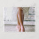 detail of feet dancing ballerina on tip up and a flowing dress.