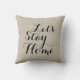 Rustic yet contemporary chic design, with black script text. Motivational throw pillow with the words "Let's Stay Home". A PRINTED beige linen photo effect background. Linen Look Custom - Encouragement - Positive Advice - Expressions Throw Pillow - For Your Home Decor Solutions. Elke Clarke© More styles and colours available in our shop at www.zazzle.com/monogramgallery. Great for your bedroom, favourite chair, as fun decor in your family room or formal decorative addition to your living room.