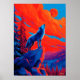 A dramatic expressionist wolf standing on a mountain peak beneath a glowing crimson moon. Bold colors and dynamic skies create a powerful symbol of strength, freedom, and wilderness spirit. Ideal for modern home decor, rustic interiors, and meaningful gifts for nature and wildlife lovers.