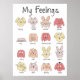 This prints shows a funny bunny with 16 common expressions, it is educational, cute and decorative.