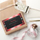The design features a noble shimmering red frame with fine decor lines, on a plain black background.